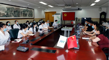 北京市社保中心的党员同志们首先向我院医务工作者起立鞠躬致敬,对医务工作者在抗击疫情期间所做出的贡献表示深深的感谢。王秋来书记表示,在国家危难时刻,白衣天使冲锋在前,作为社保工作者,不仅要向白衣天使学习,更会尽力做好后勤保障工作,为医务工作者们保驾护航。