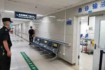演练模拟了一位正在急诊输液区输液治疗的患者,发现新冠病毒核酸可疑阳性,对其紧急转运和全科室应急处理的情景。在保卫处保安人员的协助下,急诊住院通道人员被迅速清空,并拉警戒线,避免无关人员误入。