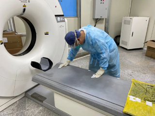 保安对抢救区所有进出通路进行封锁,组织疏散其他就诊人员。对患者接触过的地方,进行终末消毒。在保安疏散人群后,由医生和护士护送患者进入CT室,后及时返回隔离区。经病情基本稳定后,确定患者需要进行手术治疗,由护士长通知手术室,准备隔离手术室并穿戴好所有防护物品,护送患者进入手术室,对患者进行进一步治疗。
