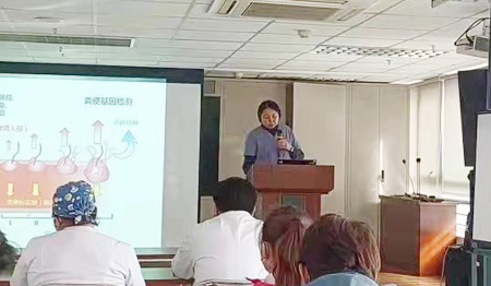 不久前,项目组来到西城区新街口社区卫生服务中心对基层医务人员开展项目培训。首先,消化科高岩副主任向各位参会人员介绍了推广工作的具体安排和计划。中华医学会消化分会委员、北京医学会消化分会副主任委员、北京积水潭医院消化科主任蓝宇教授进行了“结直肠癌早筛技术及现状”的专题学术报告,就目前我国的结直肠癌发病趋势、筛查手段和策略进行了精辟、科学的阐述。吴改玲主任医师就结直肠癌筛查新技术“粪便DNA检测在结直肠癌筛查中的应用”进行了专题学术报告。报告深入介绍了粪便DNA检测技术的原理、准确性、可靠性及在结直肠癌筛查工作中的重要作用。最后高岩医生就“结直肠早癌的内镜诊治”做专题学术报告。培训内容充实、新颖,既包括了实用知识,又介绍了学科前沿进展,各位参加培训的学员反映热烈,反响良好。