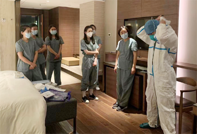 医疗队入驻之初,由于该隔离点刚刚启用,工作细节千头万绪,大部分队员连续通宵达旦地工作了数日,前两周平均睡眠时间不足4个小时。大家能自始自终坚决拥护上级政府的领导,坚持以最高标准完成本职工作,并在相关各部门协同工作中积极起协调枢纽作用。大家政治敏感性高,遇到不确定情况及时汇报、沟通和协调处理,化解了矛盾。
