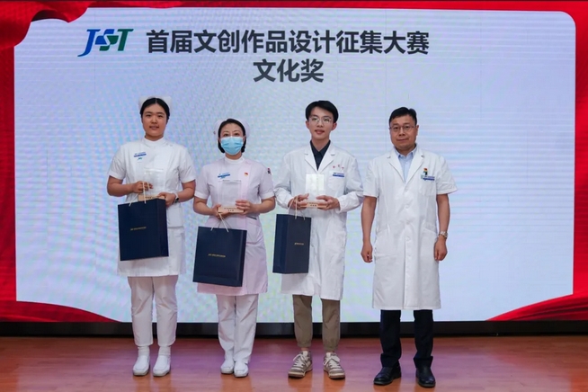 2023年底,医院举办了首届文创作品设计征集大赛,全院干部职工热情参与,共收集到来自26个党(总)支部的60余幅内容新颖别致、独具医院文化特色的作品。会议的最后,院领导分别为文化奖、实用奖、创意奖的获奖者颁发奖杯和奖品。