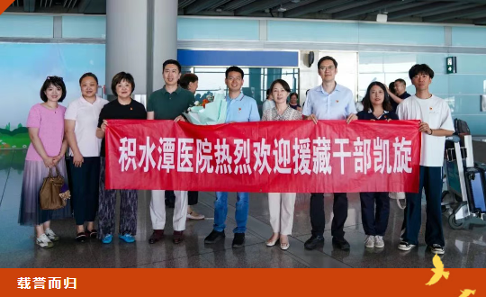 2025年7月17日下午,北京市第十批第三期援藏医疗队顺利抵京,北京积水潭医院手外科援藏干部杨辰圆满完成为期一年的医疗援藏任务回京。北京积水潭医院党委副书记吴缦莉、手外科副主任郭阳、刘波及科室同事,党办、宣传中心的工作人员前往首都机场共同迎接杨辰同志凯旋。“欢迎回家!这一年你在拉萨的付出,医院和患者都记在心里。”吴缦莉代表院党委对杨辰的归来表示欢迎,对他在拉萨援派期间的工作表现给予高度评价,并叮嘱他返京后先安心休养,做好身心状态调整。
