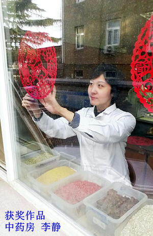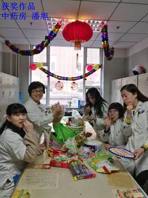 摄影作品以“积水潭的年味儿”为主题,创作时间为春节期间,中药房的职工们积极响应院工会的号召,积极摄影投稿,中药房潘旭和李静获得“优秀奖”,其余获得“纪念奖”。为迎接春节的到来,在新春来临前夕,大家一起齐动手,贴窗花、吹气球、挂拉花、贴福字对联、悬挂大红灯笼,综合楼楼道里也是张灯结彩,一派喜庆热闹的过年景象。2016年1月28日是积水潭医院建院六十周年,在新年伊始,衷心祝福热爱的积水潭医院红红火火,蒸蒸日上,像巨龙一样展翅腾飞,再创佳绩!